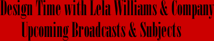 You can also e-mail Lela prior to her weekly show at DesignTime@LelaWilliamsInteriorDesign.com with your questions. You can even include pictures in your e-mail and Lela and her guests will answer your questions live on the show as time permits.